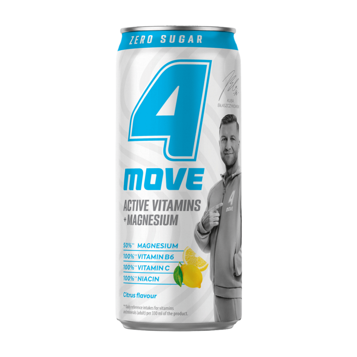 woda, dwutlenek węgla, kwas: kwas cytrynowy; cytrynian magnezu, naturalny aromat, stabilizatory: guma arabska, estry glicerolu i żywicy roślinnej; naturalny aromat limonkowo- cytrynowy, substancje słodzące: sukraloza, acesulfam K; witaminy: witamina C, niacyna, witamina B6, witamina B12; barwnik: karoteny.